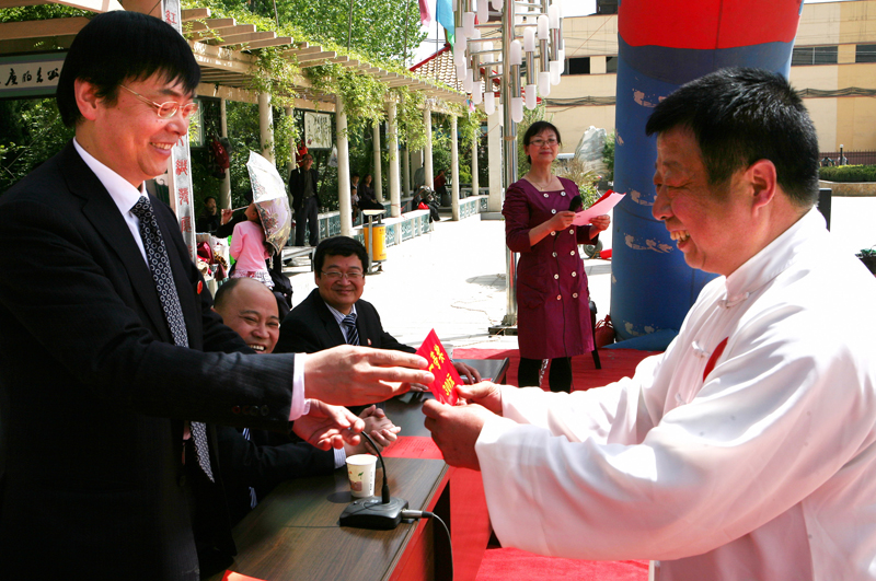 處長(zhǎng)郜鵬為榮獲個(gè)人一等獎(jiǎng)的離退休職工王銳頒獎(jiǎng)