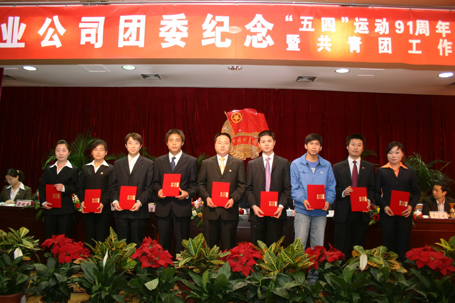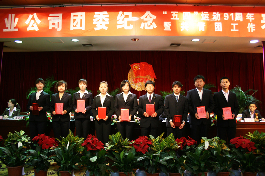 公司團(tuán)委宣傳業(yè)務(wù)主管錢鍇宣讀了《關(guān)于表彰2009年度共青團(tuán)工作先進(jìn)集體和先進(jìn)個(gè)人的決定》,授予5個(gè)基層團(tuán)委為“五四紅旗團(tuán)委”、28個(gè)團(tuán)支部為“五四紅旗團(tuán)支部”、60名同志為模范共青團(tuán)員、38名同志為優(yōu)秀團(tuán)干部、10名同志為“關(guān)心共青團(tuán)工作榮譽(yù)稱號”。出席會議的各級領(lǐng)導(dǎo)為先進(jìn)集體和先進(jìn)個(gè)人代表頒發(fā)了獎牌和榮譽(yù)證書。