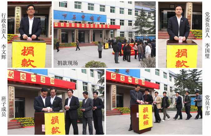 (通訊員夏恒法報(bào)道): 4月19日上午,公司直屬單位工委按照銅川市委組織部、公司黨委的號召,立即組織召開直屬單位黨支部書記專題會議,層層動員、層層發(fā)動直屬單位廣大黨員干部積極開展向青海玉樹地震災(zāi)區(qū)捐款活動。大家發(fā)揚(yáng)“一方有難,八方支援”的兄弟親情,積極行動,公司黨委書記杜樹山、局長宋志剛,以及李志科、張志文、張仿文、黃河、劉水利、薛鳴、郭寶輝、劉啟科、苑京敏、封建利等黨政領(lǐng)導(dǎo)率先捐款,機(jī)關(guān)各處室處級領(lǐng)導(dǎo)干部積極帶頭,廣大黨員干部踴躍參與,紛紛解囊,你500元、我300元、他100元,短短3個小時,公司直屬單位38個黨總支、支部368名在職黨員干部共捐款47650元。其中,對暫時不在單位的黨員干部,也通過了電話聯(lián)系的方式主動要求進(jìn)行了墊交,20余名非黨員職工也自愿參加了這次捐款,離休老干部宋繼斌捐款500元、退休干部穆連友捐款200元,大家用自己的行動為青海玉樹地震災(zāi)區(qū)群眾抗災(zāi)自救獻(xiàn)上了一份愛心。