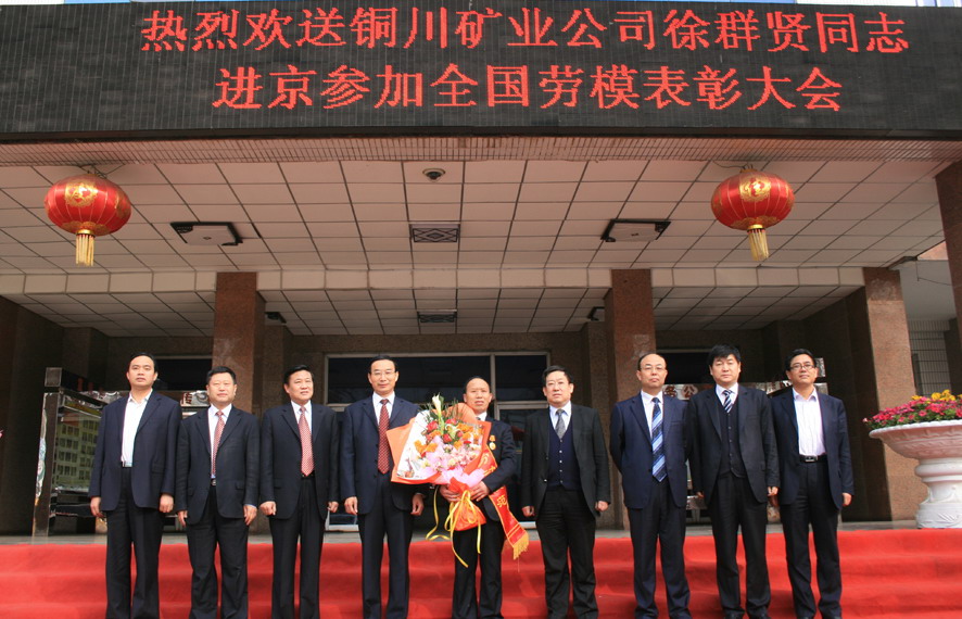 2010年全國勞動模范和先進工作者表彰大會定于4月25日-27日在北京人民大會堂隆重召開,作為陜西省75名、陜西煤業(yè)化工集團2名全國勞模代表之一的銅川礦業(yè)公司下石節(jié)礦綜掘一隊隊長徐群賢將赴京參加會議。4月24日,銅川礦業(yè)公司、下石節(jié)礦分別舉行儀式,隆重歡送徐群賢赴京參加表彰大會。
