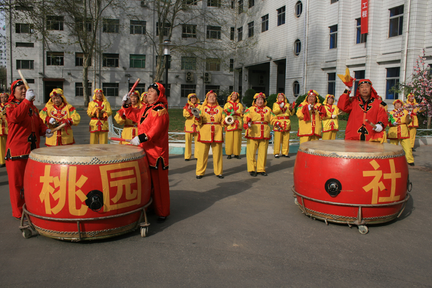 鑼鼓隊前來助興,歡送全國勞模徐群賢