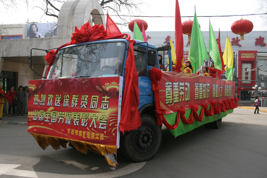 下石節(jié)礦用專門設計的彩車歡送全國勞模徐群賢