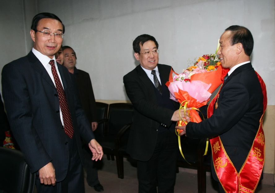 公司黨委書記杜樹山、局長宋志剛為全國勞模徐群賢披紅戴花