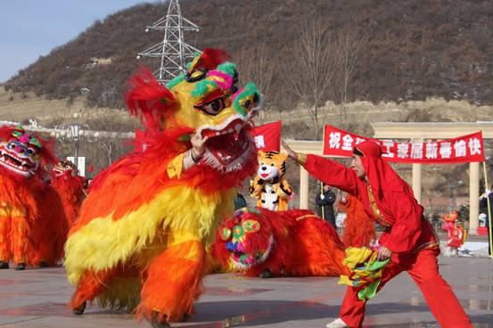 此次表演共有五個(gè)部分組成,分別是:威武雄壯、氣概豪邁的威風(fēng)鑼鼓;如一支支彩蝶翩翩起舞的秧歌表演;象征著求實(shí)、創(chuàng)新、團(tuán)結(jié)、奉獻(xiàn)企業(yè)精神的舞龍表演;吶喊著青春、彰顯著蓬勃生機(jī)的女子腰鼓;帶著黃土氣息,體現(xiàn)渭北煤海人豪放的舞獅表演。最能讓人眼前一亮的是那兩只活潑可愛的虎娃吉祥物,他一會(huì)兒穿梭于表演隊(duì)伍之間,做出各種可愛的動(dòng)作,一會(huì)兒鉆進(jìn)人群與孩子們歡鬧,引得大家不時(shí)發(fā)出陣陣歡笑,紛紛與他合影留念。最后,舞獅隊(duì)表演的獅子拜年、雙獅爭(zhēng)寵、獅子飛天、獅子翻身、獅子鬧春等高難動(dòng)作,將演出推向了高潮,贏得了職工家屬的一片掌聲。大家紛紛踏著喜悅的節(jié)拍,伴著陣陣的炮竹聲,情不自禁扭動(dòng)起來,共同感受這和諧美好的新春氛圍。