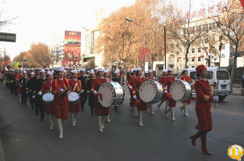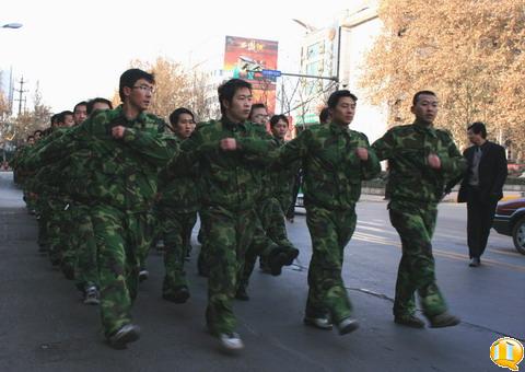 英姿勃發(fā)的學(xué)員方隊在銅川市區(qū)街頭展示