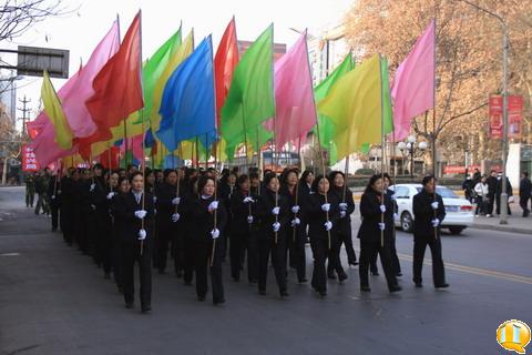 銅川工業(yè)技術(shù)學(xué)院教職員工組成的彩旗隊助陣