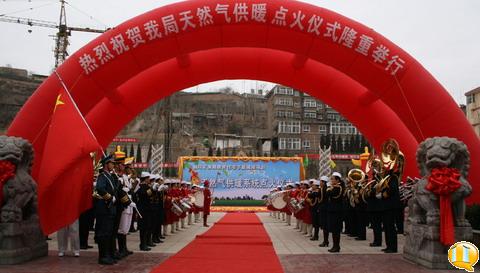 1月21日上午,位于銅川市老區(qū)的銅川礦務(wù)局供應(yīng)處新和廣場(chǎng)熱鬧非常,廣場(chǎng)內(nèi)大紅色的彩門(mén)和凌空飄舞的巨幅標(biāo)語(yǔ)相映成輝,軍樂(lè)隊(duì)鼓樂(lè)鳴奏,禮炮聲響徹云空。銅川礦務(wù)局在家的黨政領(lǐng)導(dǎo)宋志剛、杜樹(shù)山、李志科、張志文、張仿文、薛鳴、郭寶輝、劉啟科、封建利,銅川市政府、市環(huán)保局、市質(zhì)量技術(shù)監(jiān)督局、市城建管理局、市天然氣公司的有關(guān)領(lǐng)導(dǎo),銅川礦務(wù)局有關(guān)部門(mén)、處室負(fù)責(zé)人及供應(yīng)處的干部職工、家屬等數(shù)百人歡聚一起,隆重舉行銅川礦務(wù)局市區(qū)職工住宅區(qū)節(jié)能減排天然氣供暖系統(tǒng)點(diǎn)火儀式。