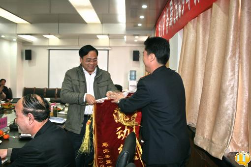 局黨委宣傳部長李德強為鐵運公司頒發(fā)“流動紅旗”