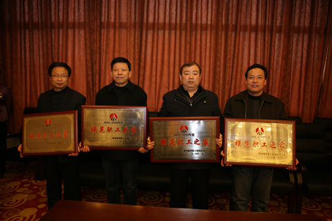 會上為獲得全國煤礦體協(xié)“與祖國同慶、健康同行“光榮稱號的先進集體頒發(fā)了獎牌。為獲得陜煤化集團2008-2009年度模范職工之家稱號的單位頒發(fā)了獎牌。為獲得礦區(qū)工會2008-2009年度模范職工之家稱號的10家單位公會頒發(fā)了獎牌;表彰獎勵了模范職工之小家42個、優(yōu)秀工會干部39名、優(yōu)秀工會積極分子43名、榮譽工會積極分子15名。