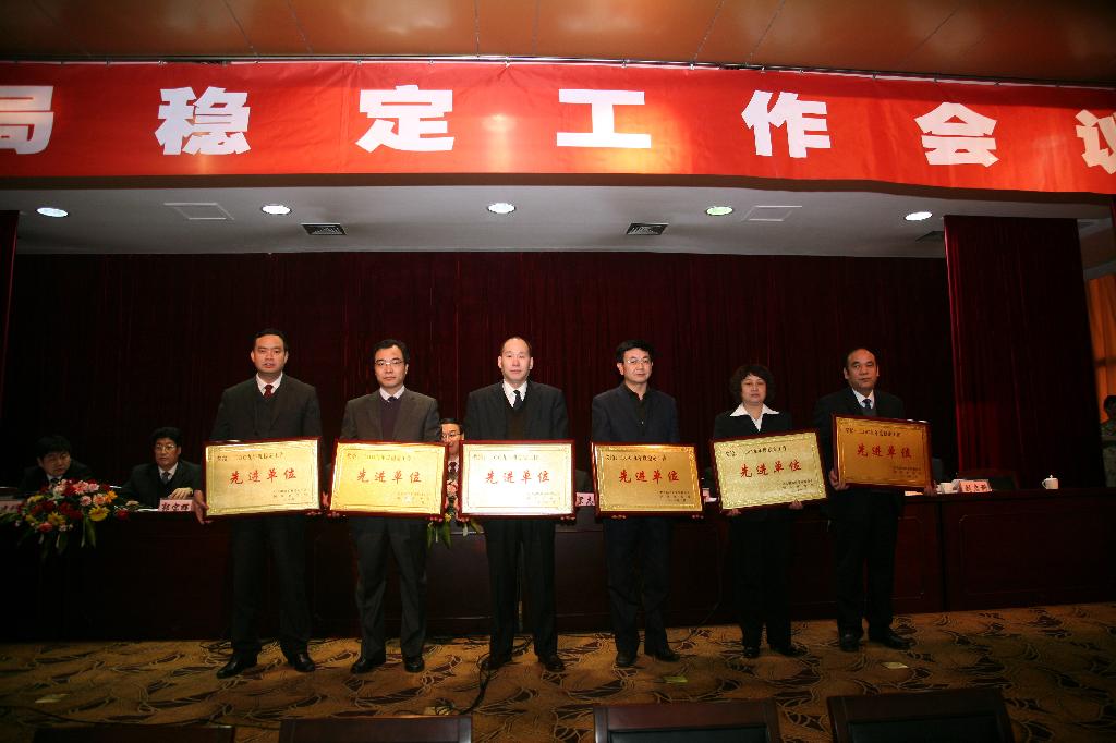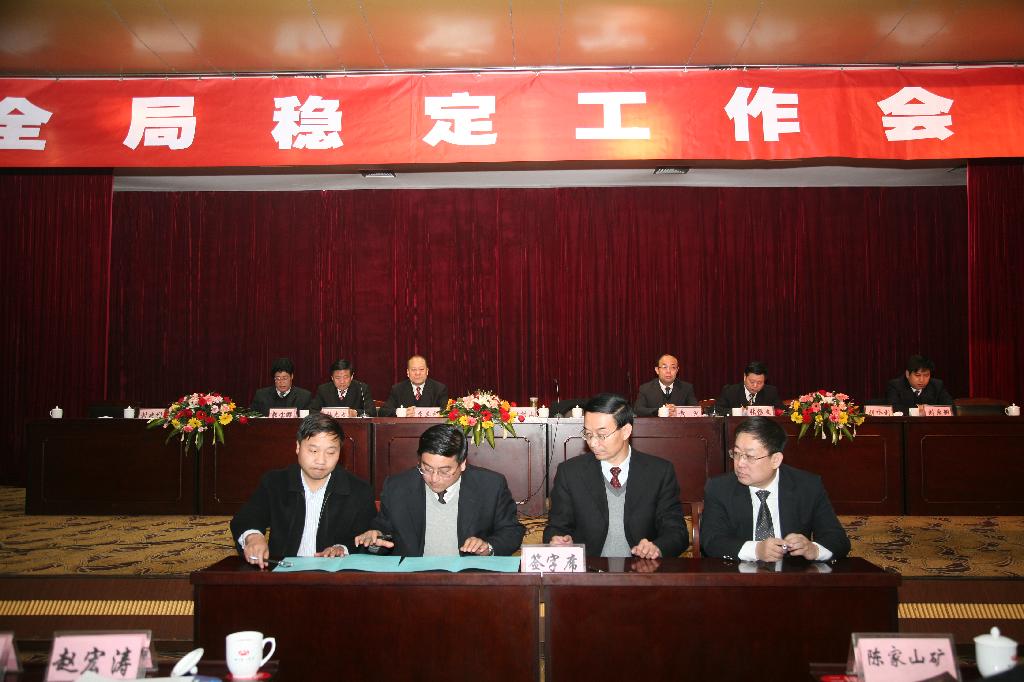 會上,局黨委副書記李志科通報了2009年穩(wěn)定工作考核情況;礦區(qū)工會主席張仿文宣讀了關于表彰2009年穩(wěn)定工作先進單位和先進個人的決定;局領導為獲得榮譽的先進集體頒發(fā)獎牌;局黨政主要領導杜樹山、宋志剛與基層各單位簽定了2010年穩(wěn)定工作目標責任書;徐家溝礦等單位進行了表態(tài)發(fā)言。