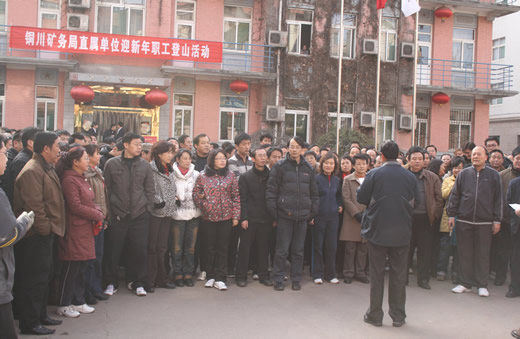 為了貫徹局三會(huì)精神,落實(shí)局三大治企新理念,快樂(lè)工作,體面生活,活躍機(jī)關(guān)干部職工的文化活躍機(jī)關(guān)干部職工文化生活,增強(qiáng)體質(zhì),以飽滿的熱情和高昂的精神狀態(tài)迎接2010年的到來(lái),局直屬單位工會(huì)近日組織局機(jī)關(guān)工會(huì)會(huì)員和5個(gè)經(jīng)濟(jì)實(shí)體的部分會(huì)員進(jìn)行“迎新年職工登山活動(dòng)”。局黨委副書記李志科、礦區(qū)工會(huì)主席張仿文到場(chǎng)并參加此次活動(dòng)。