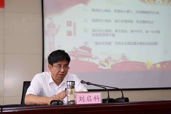開班儀式結(jié)束后,劉啟科以《砥礪初心、勇?lián)姑窞轭},從“悟透初心使命,把握核心要義,深刻理解時代內(nèi)涵;砥礪初心使命,追憶苦難輝煌,堅定理想信念;踐行初心使命,勇于擔當、善于作為,做一名合格的黨員領(lǐng)導干部;融合式黨建引領(lǐng)企業(yè)高質(zhì)量發(fā)展的實踐探索”五個方面,結(jié)合自己工作實際,通過詳實生動的案例,為學員帶來了一堂精彩的專題黨課。