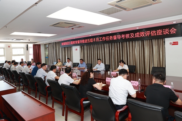 8月22日,陜煤集團(tuán)學(xué)習(xí)貫徹習(xí)近平新時(shí)代中國(guó)特色社會(huì)主義思想主題教育督導(dǎo)推進(jìn)五組組長(zhǎng)馮曉宏、副組長(zhǎng)王鑫及成員一行,對(duì)公司主題教育8月重點(diǎn)工作完成情況進(jìn)行督導(dǎo)考核評(píng)估,公司黨委副書記、董事、工會(huì)主席、主題教育領(lǐng)導(dǎo)小組副組長(zhǎng)許江濤主持會(huì)議,公司主題教育各工作組組長(zhǎng)及相關(guān)人員參加會(huì)議。