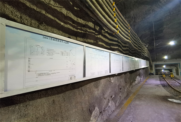 注重細(xì)節(jié)管控,為遠(yuǎn)距離供電供液設(shè)備列車建立防水沿,搭建拼色行人通道;設(shè)置運(yùn)回順機(jī)電設(shè)備硐室,搭建設(shè)備臺(tái)基,做到“各安其位”;為移動(dòng)餐車加設(shè)臺(tái)階,給支架、H架等編制“身份證號(hào)”,材料集中碼放,優(yōu)化環(huán)境,文明生產(chǎn)。