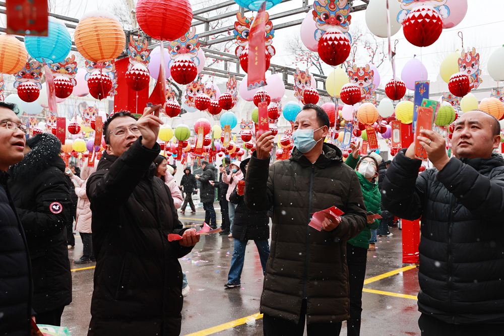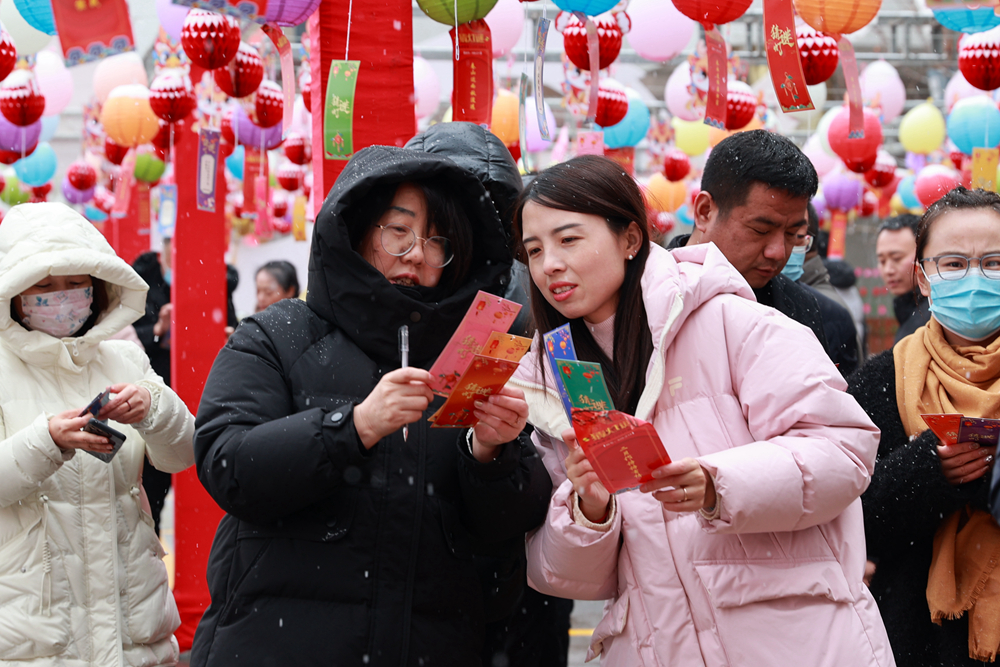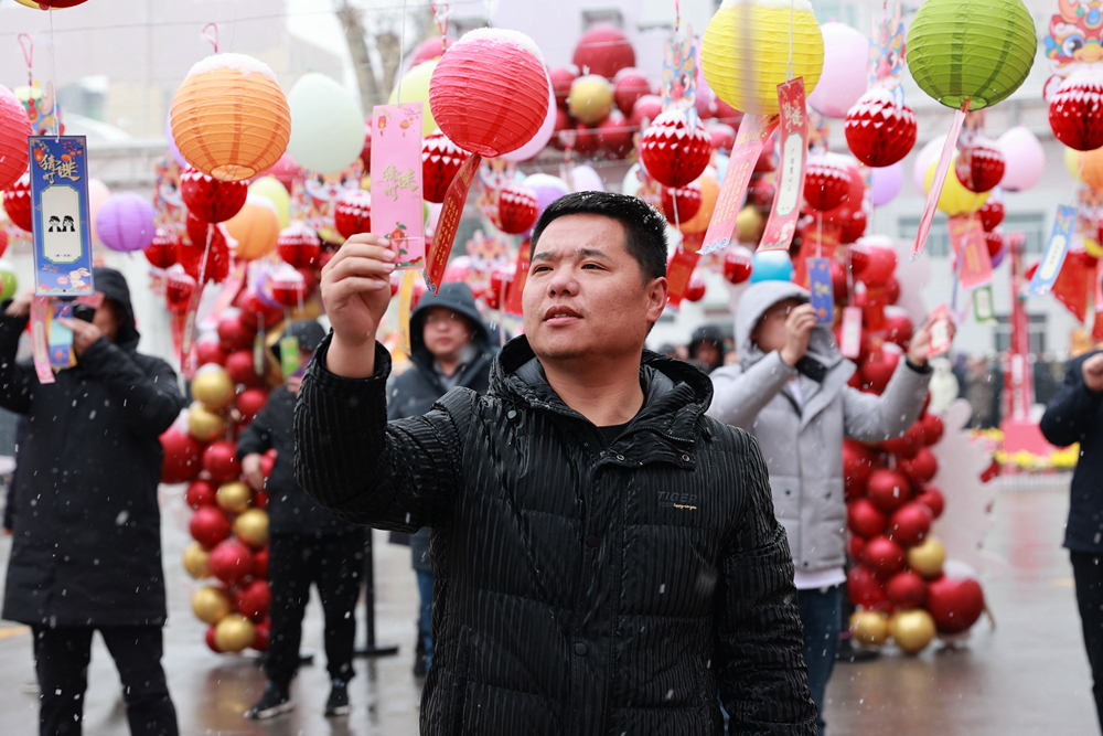 活動現(xiàn)場,雖然雪花飛舞、天氣寒冷,但卻抵擋不住干部職工參與猜謎活動的熱情。一條條燈謎各有特色、內(nèi)容豐富,既營造了節(jié)日的喜慶,歡樂的氛圍,又圍繞弘揚文化,普及知識,為職工參與活動、展示智慧創(chuàng)造了良好條件。