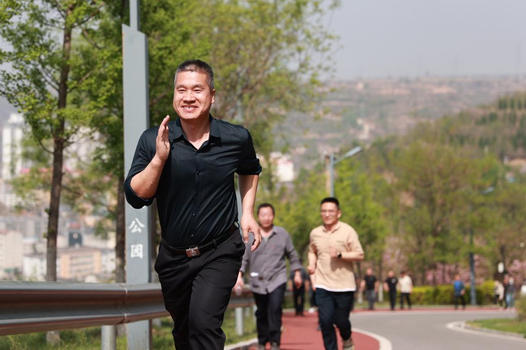 此次登山健身活動由市人民公園正門出發(fā),連續(xù)爬坡至山頂塬畔村,全程約三公里。隨著領隊一聲令下,大家精神抖擻、奮勇爭先,以良好的團隊精神投入活動之中,經(jīng)過30分鐘的你追我趕、奮力登攀,全部到達目的地。