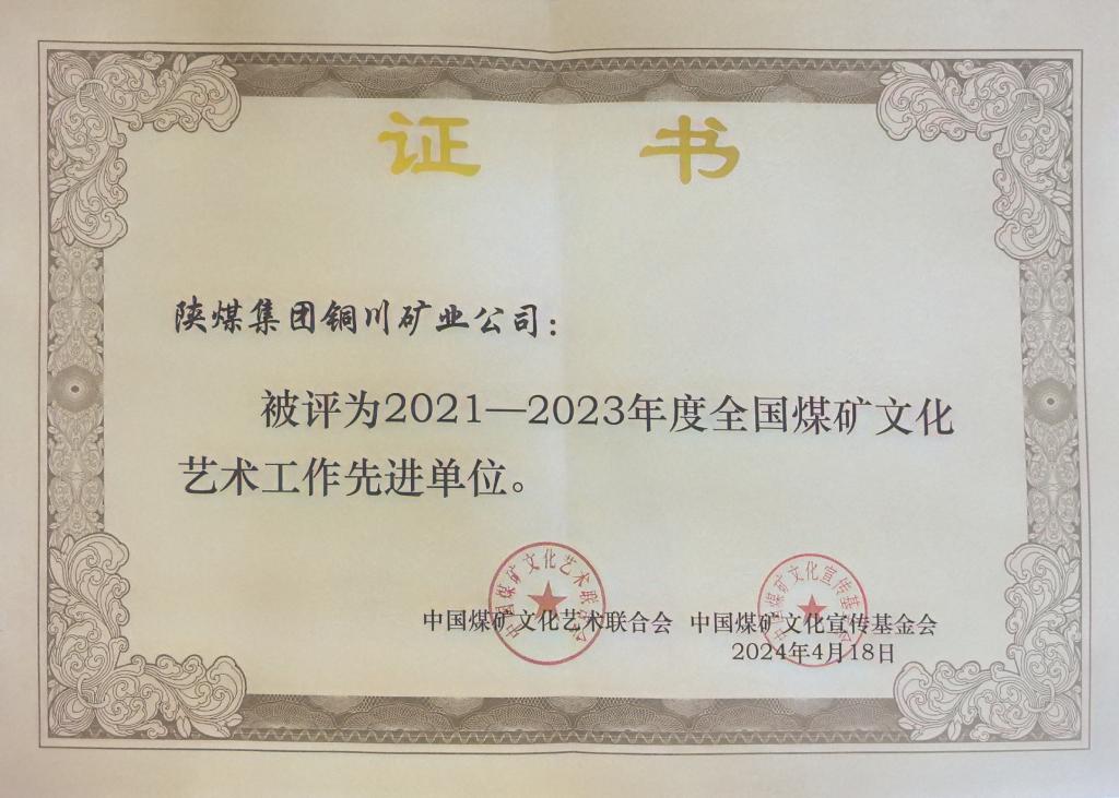 近日,中國(guó)煤礦文化藝術(shù)聯(lián)合會(huì)第六次會(huì)員代表大會(huì)在廣東中山召開,大會(huì)表彰了2021—2023年度全國(guó)煤礦文化藝術(shù)工作先進(jìn)單位和先進(jìn)個(gè)人,公司被授予2021—2023年度“全國(guó)煤礦文化藝術(shù)工作先進(jìn)單位”殊榮,一名同志榮獲“全國(guó)煤礦文化藝術(shù)工作先進(jìn)個(gè)人”榮譽(yù),為公司文化藝術(shù)工作大繁榮、大發(fā)展注入強(qiáng)勁動(dòng)能。