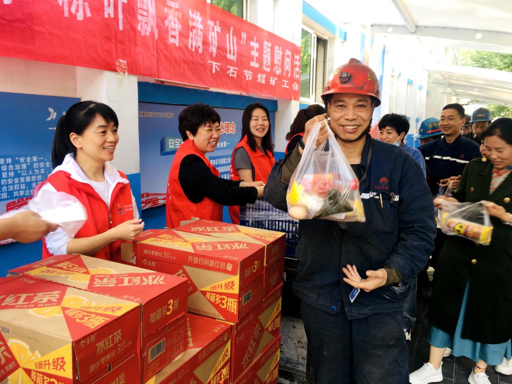 下石節(jié)礦工會組織開展了“我們的節(jié)日·端午送溫暖囑安全”活動,女工家屬協(xié)管員將香甜的粽子、雞蛋、面包和飲料等送到職工手中,同時送上節(jié)日的祝福,叮囑他們?yōu)榱说V井安全發(fā)展和家庭幸福美滿,牢記安全,杜絕違章,高高興興上班,平平安安回家。
