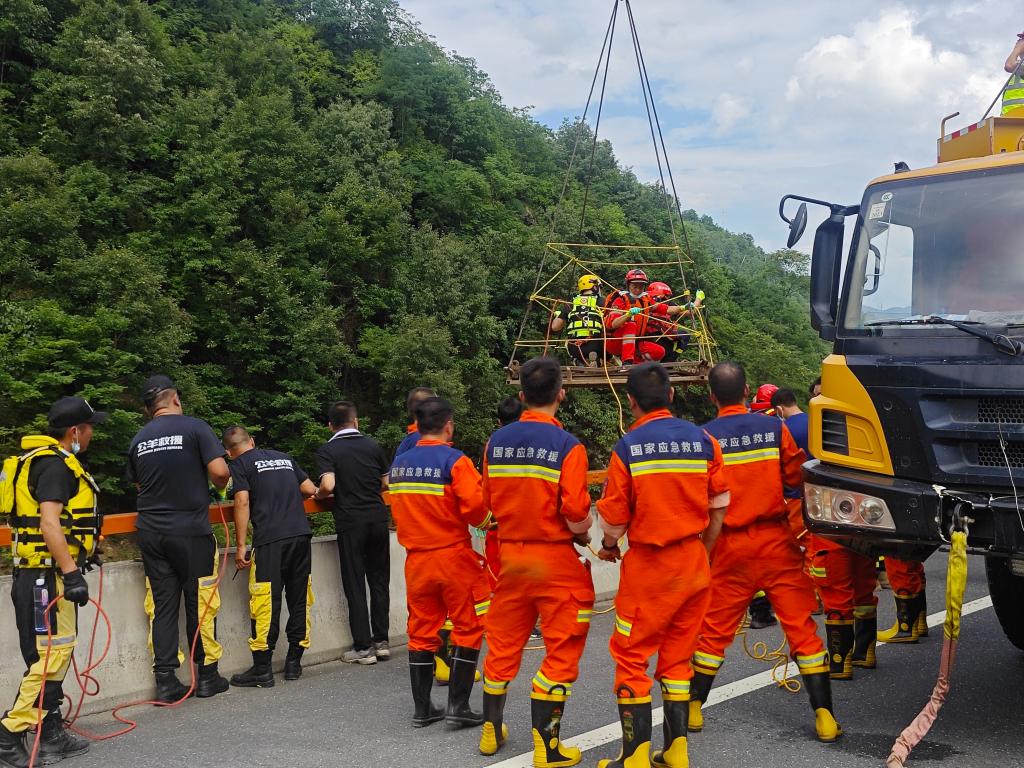 7月19日晚,一場(chǎng)突如其來的暴雨山洪導(dǎo)致陜西柞水丹寧高速水陽段公路橋梁垮塌。接到上級(jí)指令后,陜煤集團(tuán)聞“汛”而動(dòng)、快速響應(yīng),迅速指令公司救護(hù)大隊(duì)火速集結(jié),出動(dòng)16名指戰(zhàn)員,衛(wèi)星通訊指揮車、宿營車等救援車輛3臺(tái),攜帶破拆支護(hù)、救生防護(hù)、通信保障等各類救援裝備30余套,立即奔赴現(xiàn)場(chǎng)參加救援。