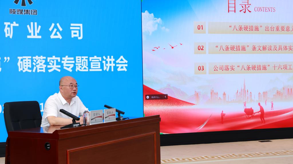 為認(rèn)真貫徹落實(shí)國家礦山安全監(jiān)察局關(guān)于“八條硬措施”硬落實(shí)相關(guān)要求,深刻把握“八條硬措施”精神實(shí)質(zhì)和科學(xué)內(nèi)涵,9月10日,公司在信息調(diào)度中心五樓會(huì)議室舉辦“八條硬措施”硬落實(shí)主題宣講會(huì)。公司黨委書記、董事長路根奎主持會(huì)議,公司黨委副書記、董事、總經(jīng)理雷鐵山作了宣講。
