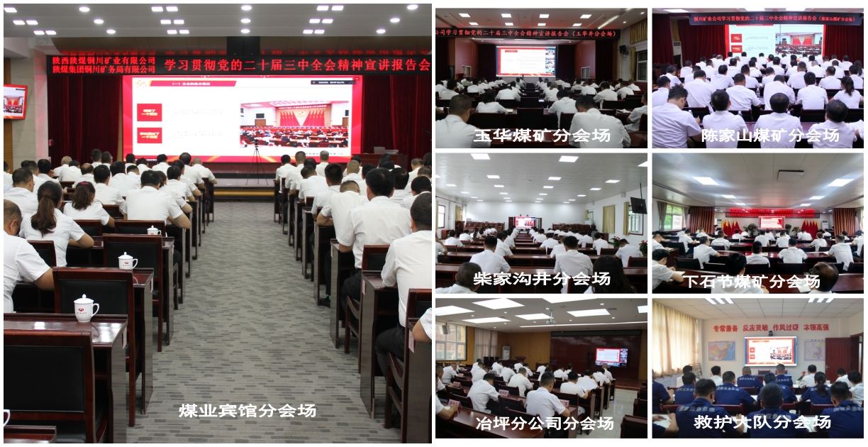 宣講會由公司黨委副書記、董事、總經(jīng)理雷鐵山主持。本次宣講,采取現(xiàn)場會與視頻會相結(jié)合的方式進行,共設(shè)1個主會場、7個分會場。公司領(lǐng)導(dǎo)班子成員,各副總師、機關(guān)各部室負責(zé)人、生產(chǎn)輔助單位主要負責(zé)人在主會場參會;4對生產(chǎn)礦井,冶坪分公司、救護大隊、生產(chǎn)輔助單位領(lǐng)導(dǎo)班子成員及科部長、區(qū)隊長、黨員代表在各分會場參會,共有各條戰(zhàn)線的450多名黨員干部聆聽了宣講。