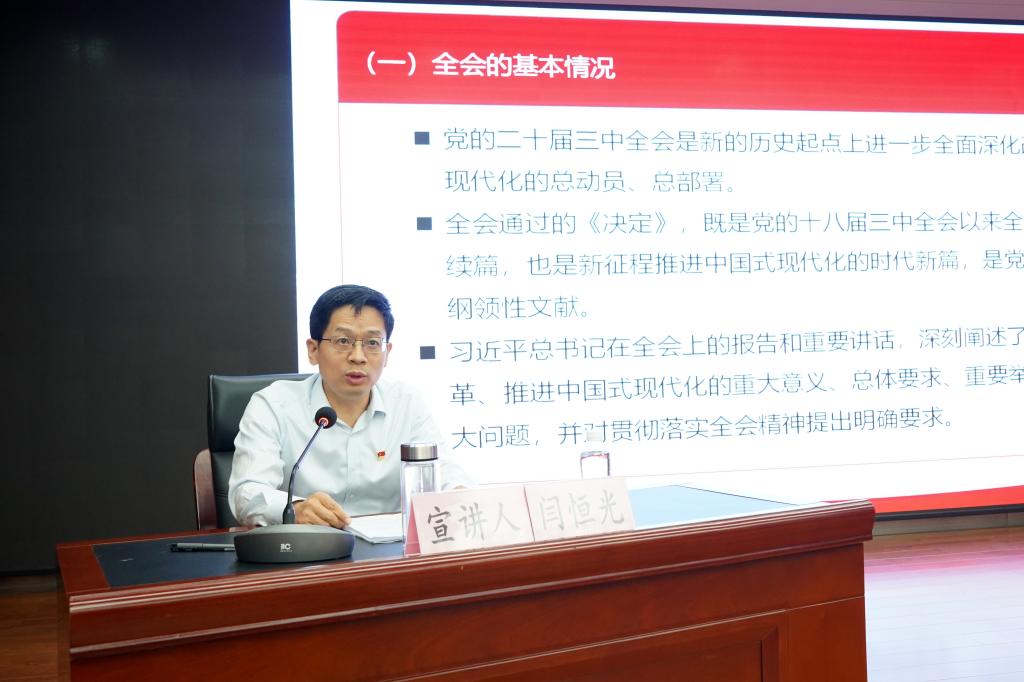 宣講中,閆恒光從“全會的基本情況、深入學習領會習近平總書記在全會上的重要講話精神、全面準確理解《決定》提出的進一步全面深化改革重大舉措、全力以赴抓好全會精神貫徹落實”四個方面,對黨的二十屆三中全會的重大意義、豐富內(nèi)涵、精髓要義、實踐要求進行了深入解讀,并緊密結(jié)合全會精神,對深入推進黨風廉政建設和反腐敗斗爭及紀檢監(jiān)察體制改革的背景意義、重大舉措、重要內(nèi)容進行了細致講解,對集團改革發(fā)展的重大決策部署和集團今年以來的重點工作、重大項目推進情況進行了系統(tǒng)介紹,要求公司上下切實把學習貫徹全會精神作為當前和今后一個時期的重大政治任務,切實在深學細悟、入腦入心上下功夫,在宣傳宣講、講深講透上下功夫,在落地落細、見行見效上下功夫,在從嚴從緊、抓常抓長上下功夫,進一步把思想和行動統(tǒng)一到全會精神上來,統(tǒng)一到服務推動集團改革發(fā)展大局上來,緊密結(jié)合企業(yè)實際,切實抓好安全生產(chǎn)、經(jīng)營管理、改革發(fā)展、全面從嚴治黨、黨風廉政建設等工作,以全面深化改革推動老礦區(qū)轉(zhuǎn)型升級,為陜煤集團高質(zhì)量發(fā)展、創(chuàng)建世界一流企業(yè)貢獻新的更大力量。