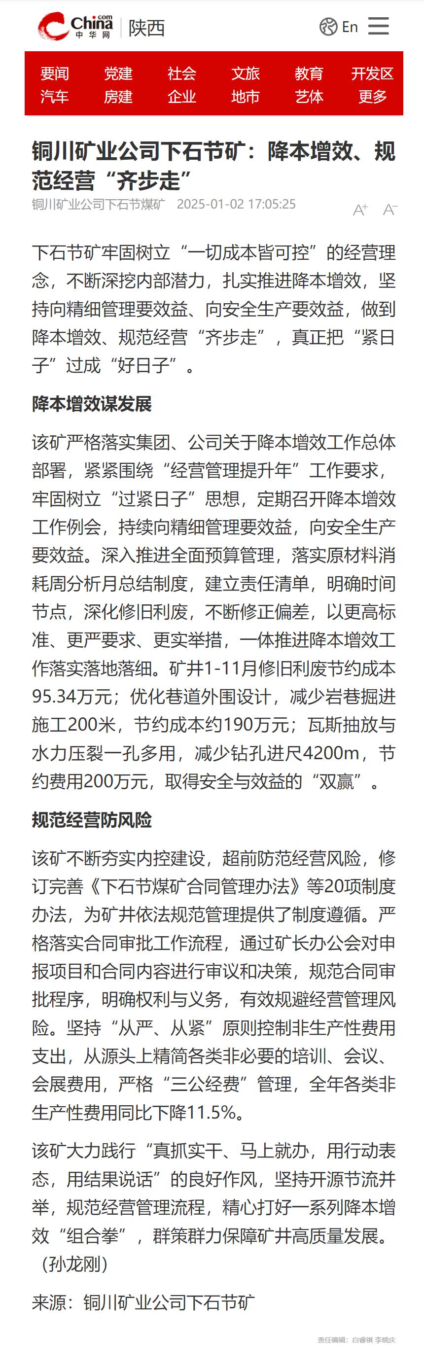 您好,歡迎登錄陜煤集團銅川礦業(yè)有限公司官網(wǎng)!