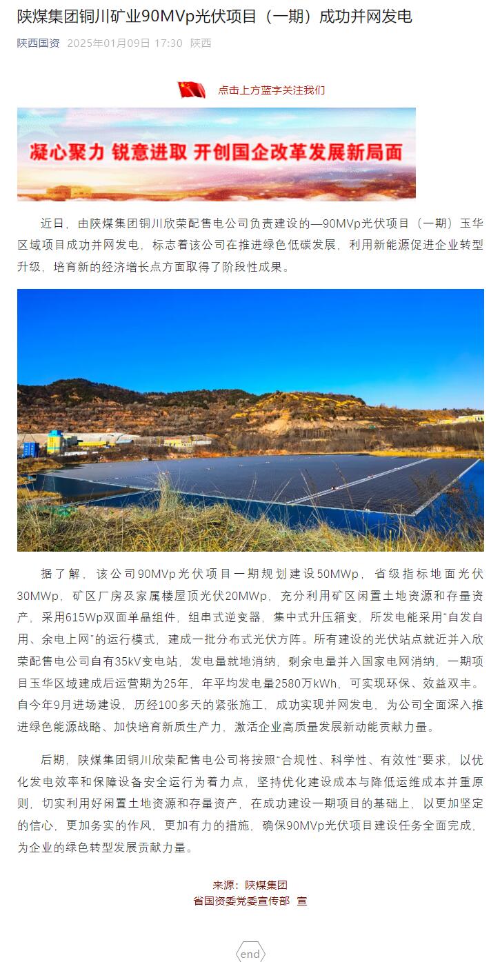 上一條:中華網(wǎng)| 柴家溝井:聚焦于“小” 行之于“實” 打造高質(zhì)量發(fā)展新引擎 下一條:集團網(wǎng)| 銅川礦業(yè)90MVp光伏項目(一期)成功并網(wǎng)發(fā)電