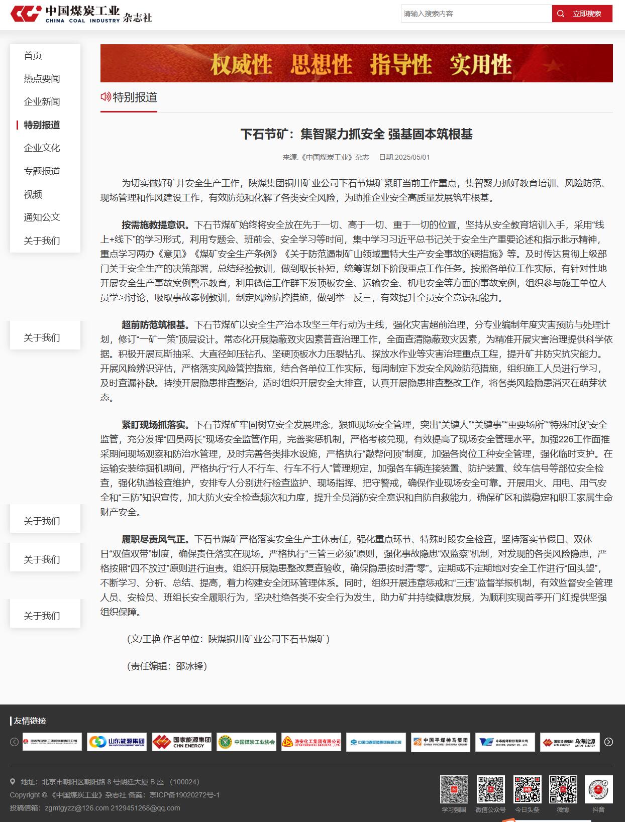 上一條:中華網(wǎng)| 柴家溝井:凝心聚力筑根基 智引英才賦新能 下一條:三秦網(wǎng)| 陳家山煤礦:解鎖新質(zhì)生產(chǎn)力的“人才密碼”
