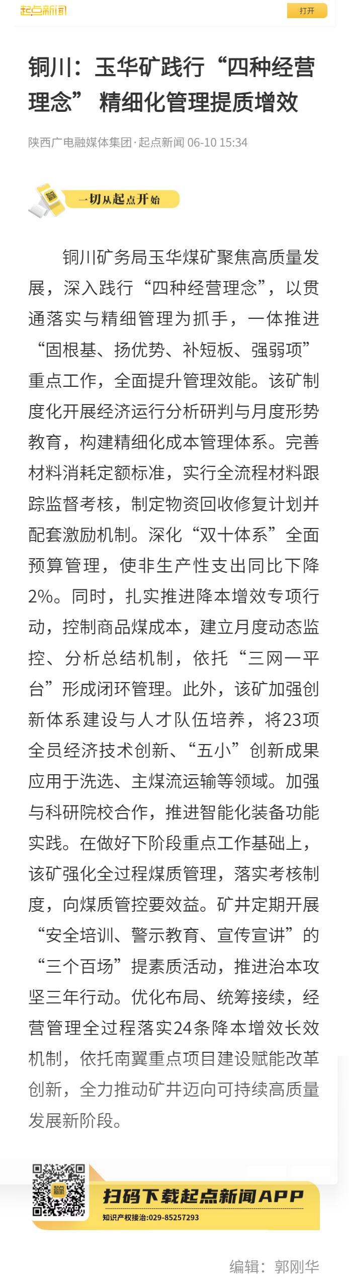 起點(diǎn)新聞| 銅川:玉華礦踐行“四種經(jīng)營(yíng)理念” 精細(xì)化管理提質(zhì)增效