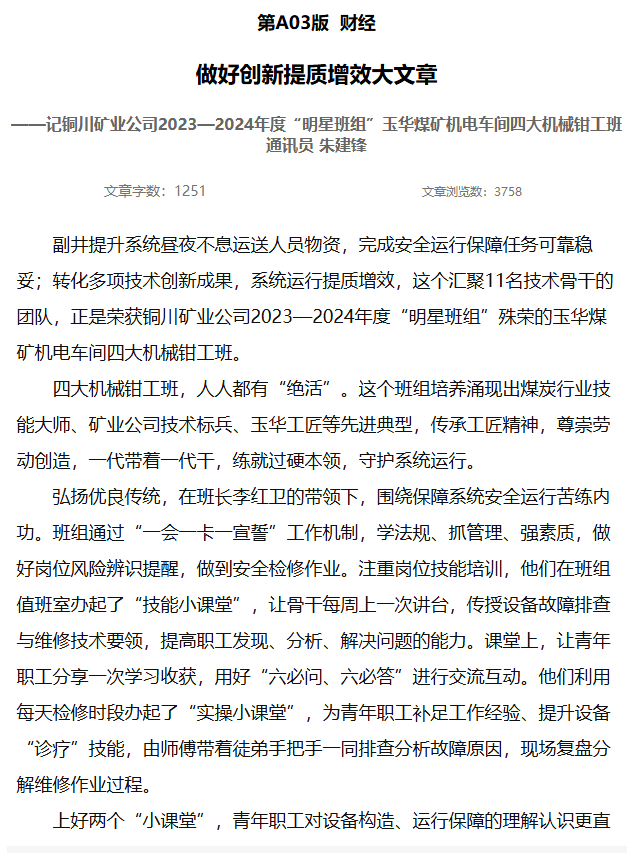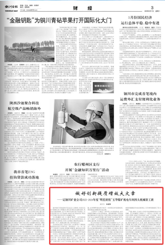 銅川日?qǐng)?bào)| 玉華礦:做好創(chuàng)新提質(zhì)增效大文章