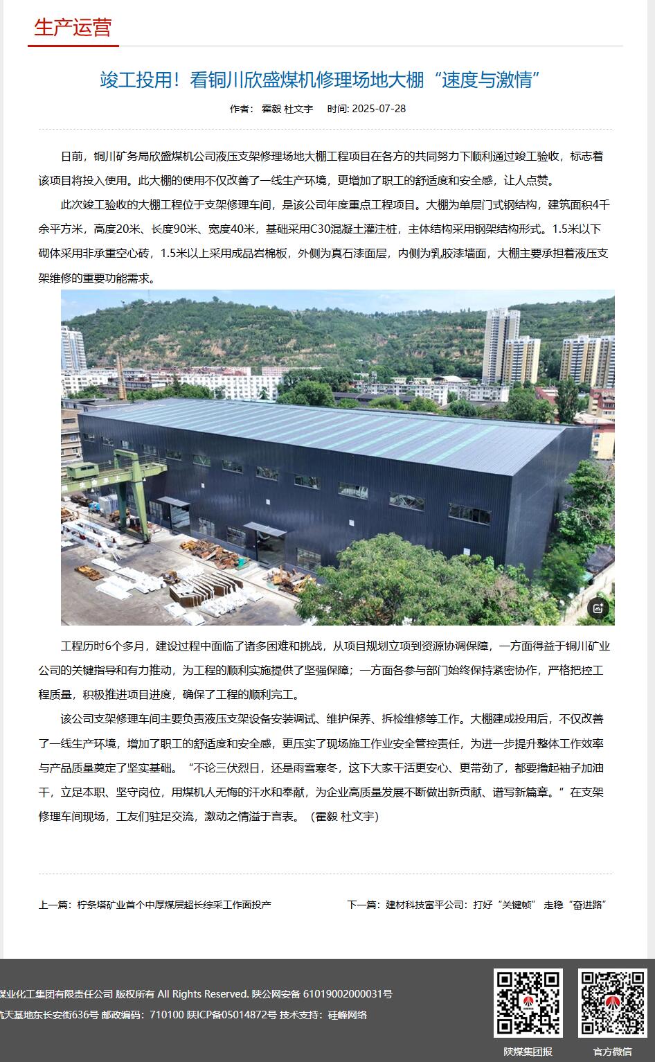 集團網(wǎng)| 竣工投用!看銅川欣盛煤機修理場地大棚“速度與激情”