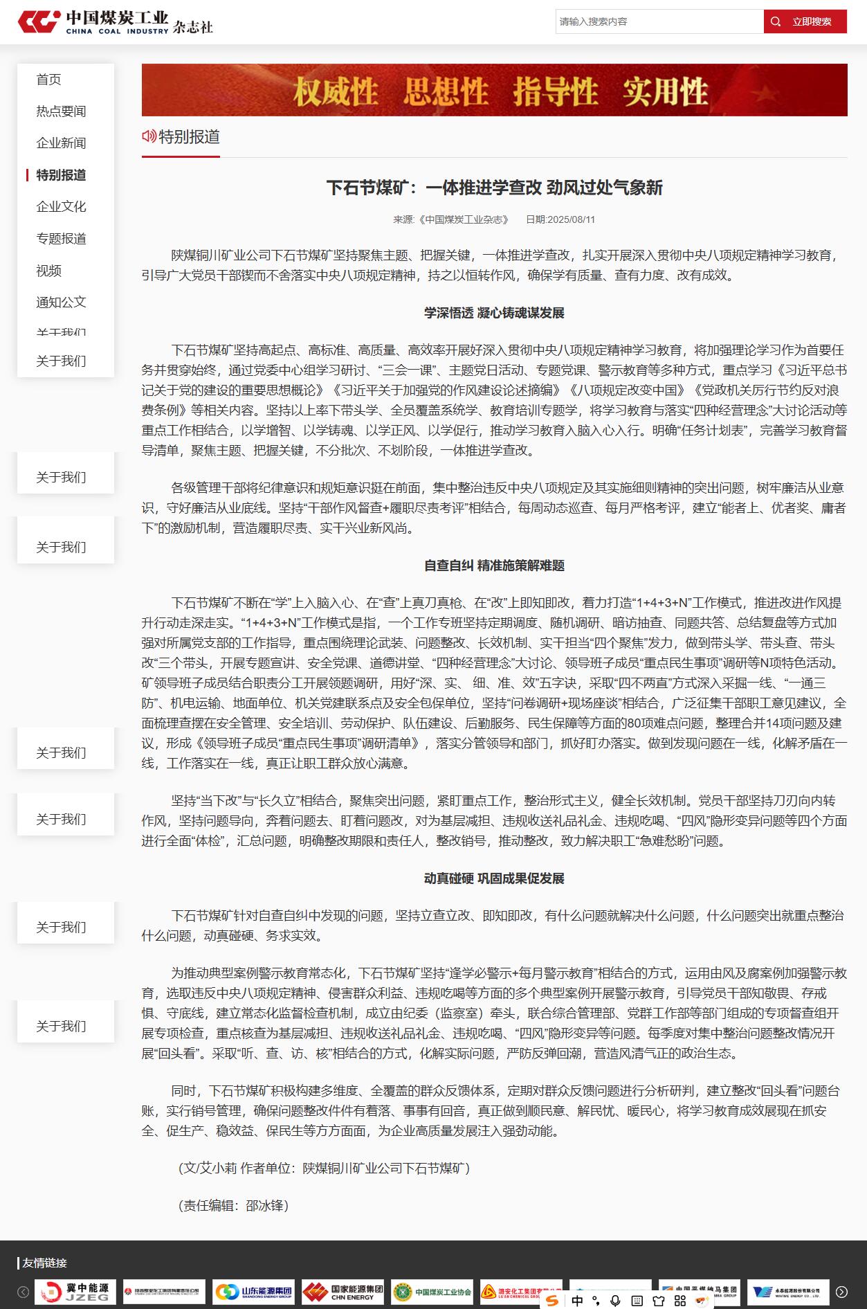 中國(guó)煤炭工業(yè)雜志| 下石節(jié)煤礦:一體推進(jìn)學(xué)查改 勁風(fēng)過(guò)處氣象新