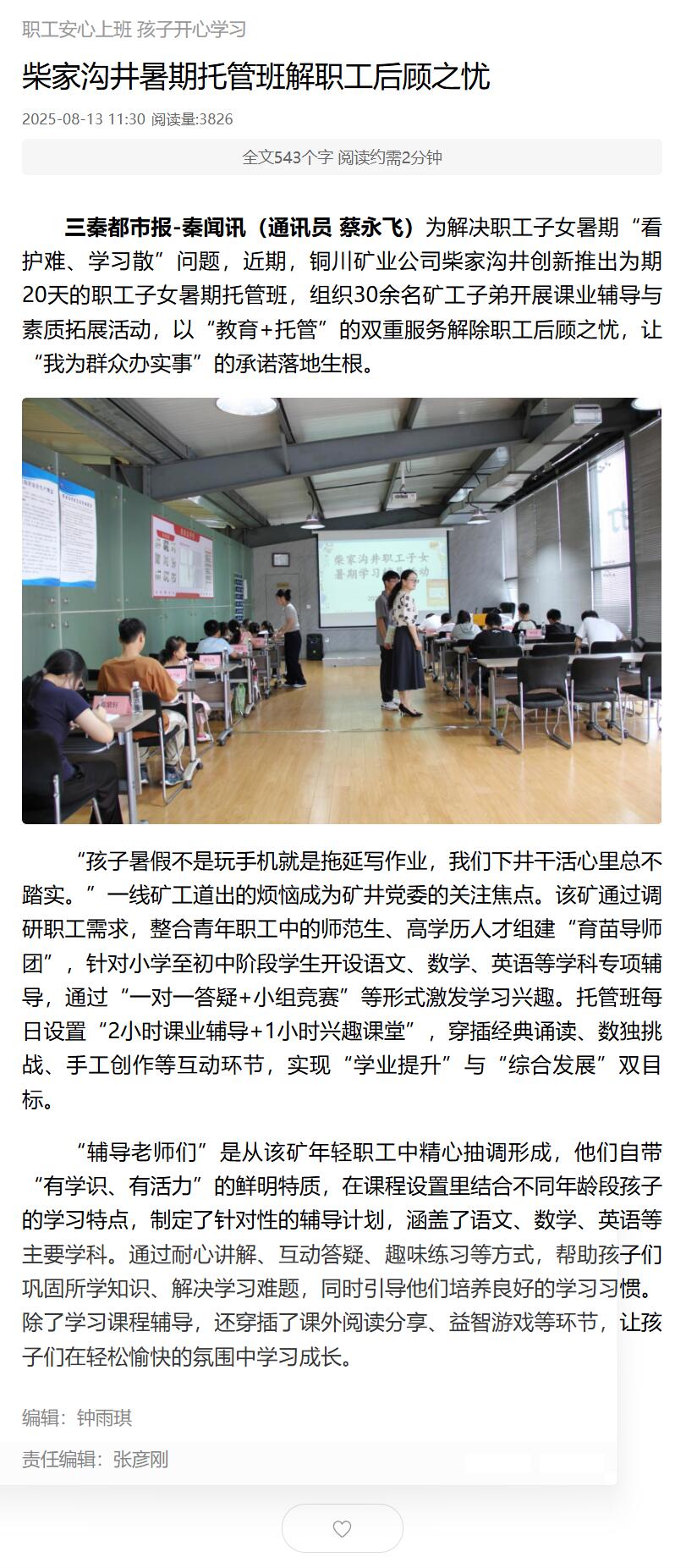 三秦網(wǎng)| 柴家溝井暑期托管班解職工后顧之憂