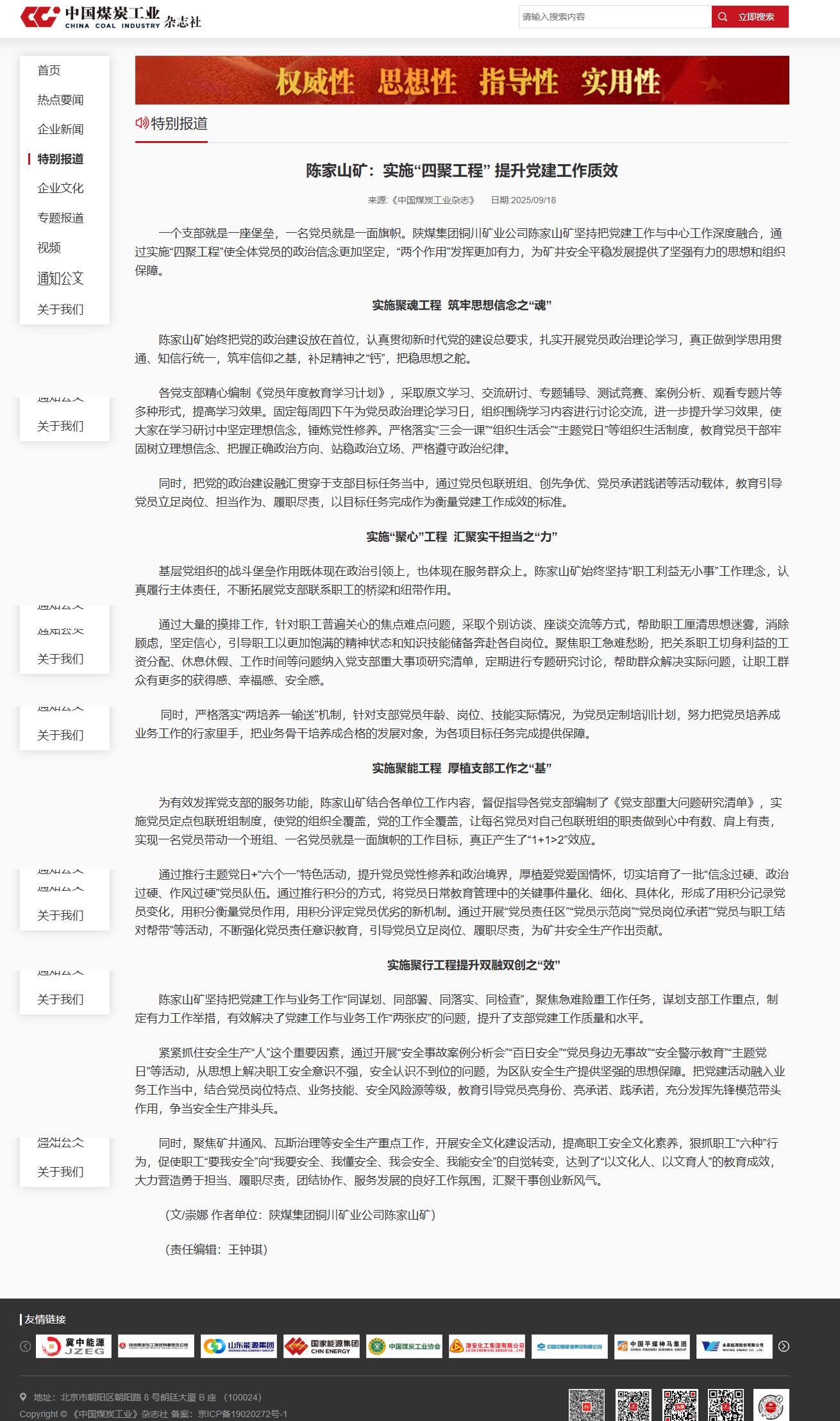 上一條:集團網| 黨建領航聚動能 品牌賦能促發(fā)展——銅川礦業(yè)玉華煤礦柴家溝井綜采黨支部標準化規(guī)范化建設成果 下一條:三秦網| 陳家山煤礦:激活黨建“紅細胞”釋放安全“大能量”