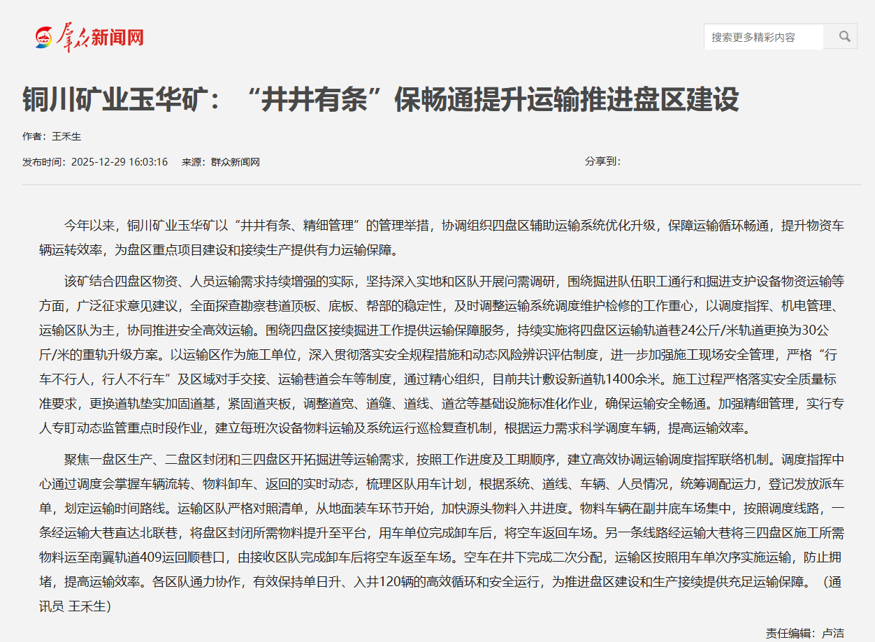 群眾新聞網(wǎng)| 玉華礦:“井井有條”保暢通提升運(yùn)輸推進(jìn)盤區(qū)建設(shè)