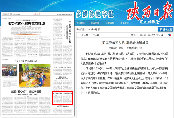 本報訊(記者 李艷 通訊員 席選民)8月31日,記者從陜煤集團銅川礦業(yè)公司獲悉,在第18屆亞運會田徑男子鏈球決賽中,銅川礦業(yè)公司礦工子弟、鏈球選手齊大凱獲得第6名的好成績。