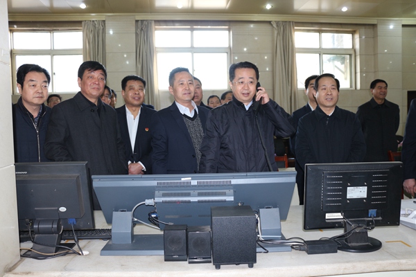 陸治原一行到礦后,首先來到礦信息監(jiān)控調(diào)度指揮中心,查看了井下生產(chǎn)現(xiàn)場實時視頻監(jiān)控和人員定位系統(tǒng)運行情況,詳細詢問了解礦井概況、災害治理、煤質(zhì)管理、經(jīng)營銷售、現(xiàn)代化建設(shè)等安全生產(chǎn)工作和節(jié)日期間安全工作安排部署情況,他通過視頻電話與井下當班帶班干部、綜采隊黨支部書記侯利紅進行了視頻通話,他說:“快過年了,我代表省委省政府向堅守在井下生產(chǎn)一線的煤礦干部職工拜個早年,你們一定要注意安全”。在與省局和銅川礦業(yè)公司相關(guān)人員交流中,他詢問了解銅川礦業(yè)公司積極主動推進去產(chǎn)能任務落實情況,以及領(lǐng)導干部下井帶班、瓦斯治理、防治水、防滅火等工作進展情況。他指出,要進一步完善監(jiān)測監(jiān)控系統(tǒng)與監(jiān)管部門的聯(lián)網(wǎng)建設(shè),深刻吸取煤礦安全事故教訓,杜絕麻痹大意思想,高度重視瓦斯治理和防治水、防滅火工作,安全警鐘長鳴,確保安全生產(chǎn)。他強調(diào),做好礦井安全生產(chǎn)工作,一是要不斷加強能力建設(shè),提升安全管理水平。二是要嚴格落實各項安全生產(chǎn)制度。三是要監(jiān)管防范措施到位。在安全生產(chǎn)周期穩(wěn)定、形勢越好的時期,越要重視安全工作,不能松懈大意。自覺把思想和行動統(tǒng)一到習近平總書記關(guān)于安全生產(chǎn)工作的系列重要講話和指示精神上來,將“人命關(guān)天,發(fā)展決不能以犧牲人的生命為代價”作為一條不可逾越的紅線,始終堅持“綠色GDP”發(fā)展理念,認真貫徹落實省委省政府安全生產(chǎn)工作要求,健全完善安全生產(chǎn)責任制,領(lǐng)導干部切實擔負起安全生產(chǎn)具體責任,齊心協(xié)力保障銅煤安全生產(chǎn)。要堅決貫徹落實供給側(cè)結(jié)構(gòu)性改革,按照省委省政府要求推動去產(chǎn)能工作,達不到安全等相關(guān)要求的礦井及時關(guān)閉,做好人員安置工作。同時,深挖內(nèi)部潛力,做好產(chǎn)業(yè)結(jié)構(gòu)調(diào)整,充分釋放優(yōu)質(zhì)產(chǎn)能。