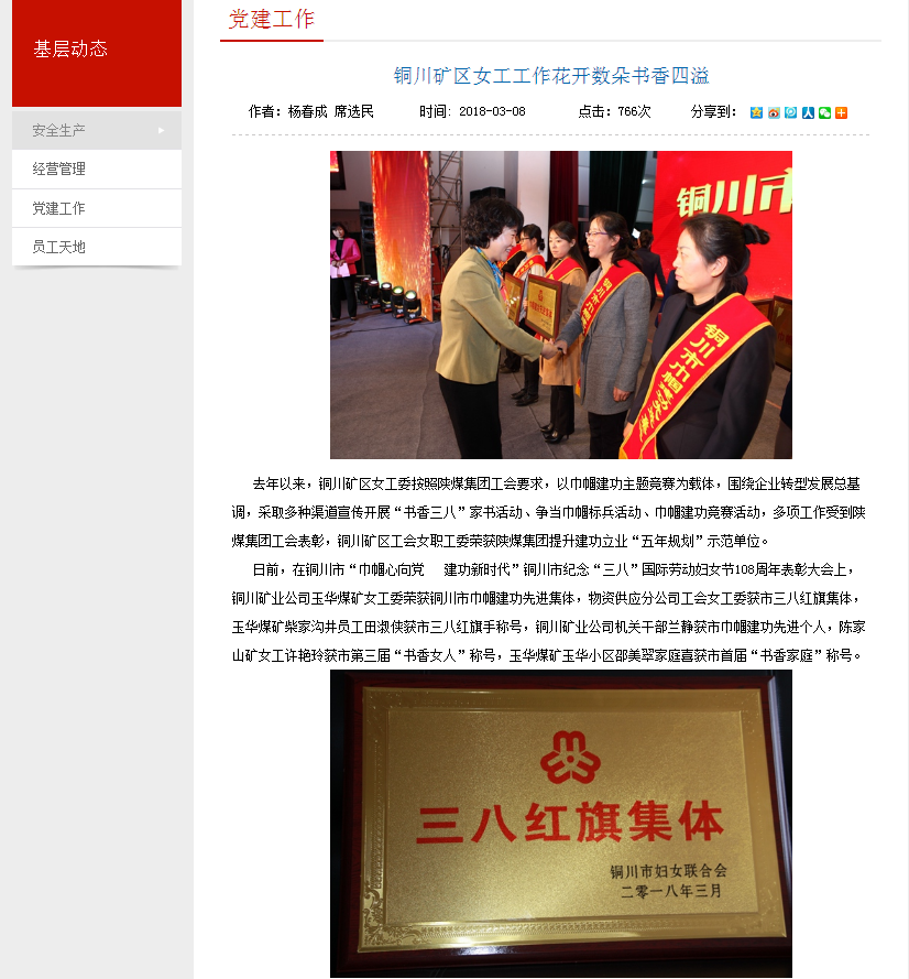 去年以來,銅川礦區(qū)女工委按照陜煤集團(tuán)工會(huì)要求,以巾幗建功主題競賽為載體,圍繞企業(yè)轉(zhuǎn)型發(fā)展總基調(diào),采取多種渠道宣傳開展“書香三八”家書活動(dòng)、爭當(dāng)巾幗標(biāo)兵活動(dòng)、巾幗建功競賽活動(dòng),多項(xiàng)工作受到陜煤集團(tuán)工會(huì)表彰,銅川礦區(qū)工會(huì)女職工委榮獲陜煤集團(tuán)提升建功立業(yè)“五年規(guī)劃”示范單位。