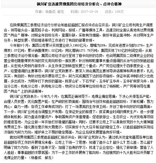 集團(tuán)網(wǎng)站:銅川礦業(yè)迅速貫徹集團(tuán)公司經(jīng)濟(jì)分析會、點評會精神