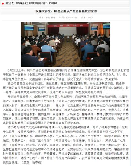陜煤集團(tuán)網(wǎng)站 2017年5月31日 黨建工作欄目
