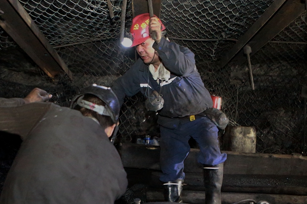 早上8點35分,李保舉帶頭拉起每根重約20公斤的支護用錨索,帶領職工進入工作現(xiàn)場。