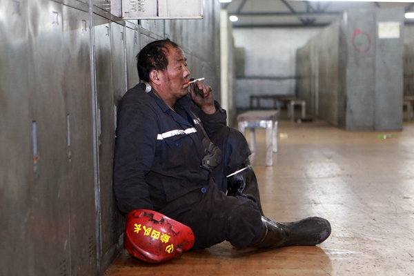 早上7點40分,李保舉在井口和工友們一起接受驗身工檢查。