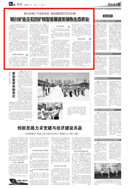 陜西工人報:銅川礦業(yè)王石凹礦轉(zhuǎn)型發(fā)展進(jìn)軍綠色生態(tài)農(nóng)業(yè)