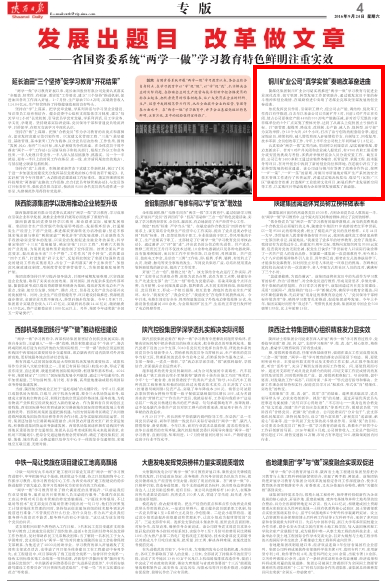 陜西日報:銅川礦業(yè)公司“真學實做”奏響改革奮進曲