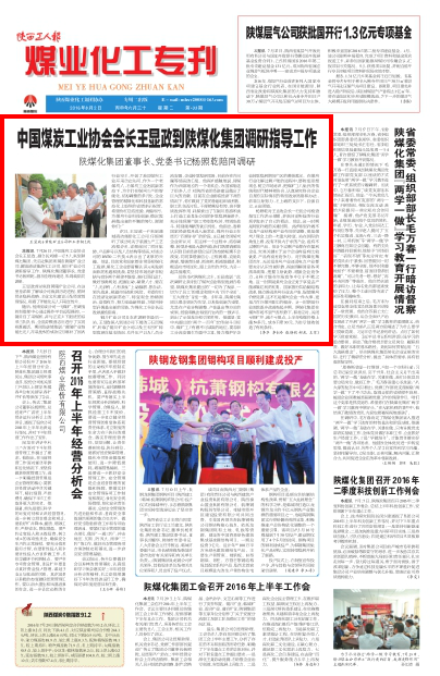 陜西工人報(bào) 2016年8月2日 煤化專刊頭版頭條