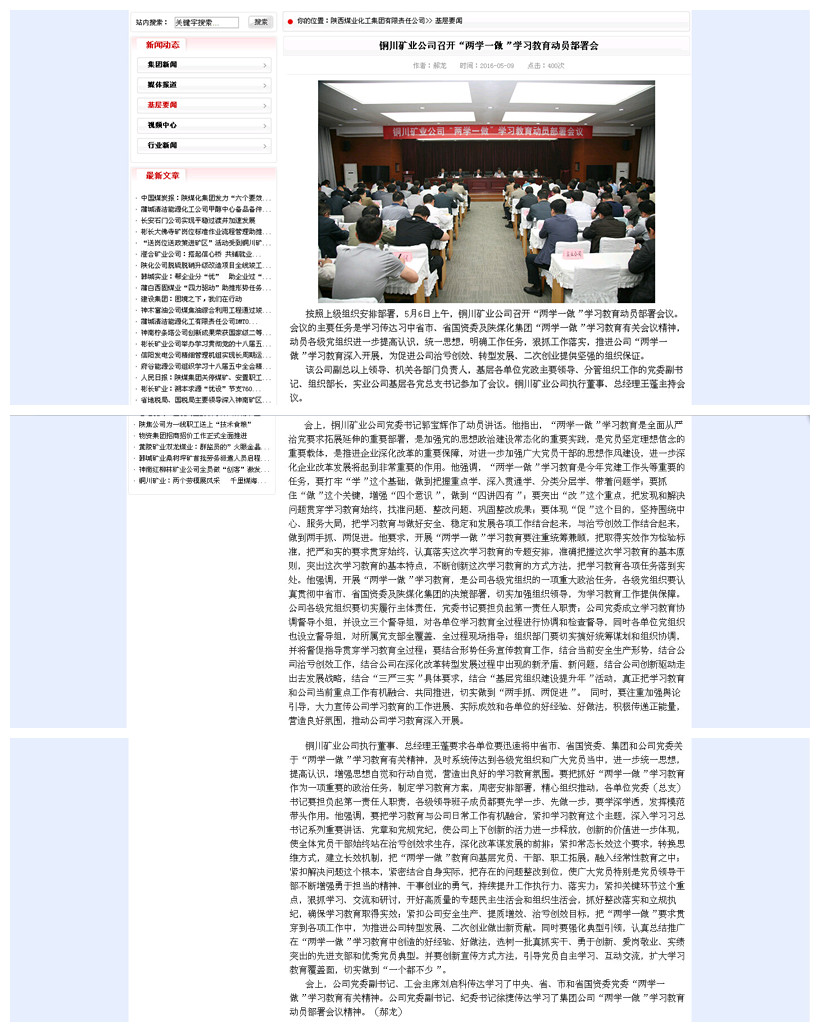 陜煤化集團網(wǎng)站 2016年5月9日 基層要聞欄目