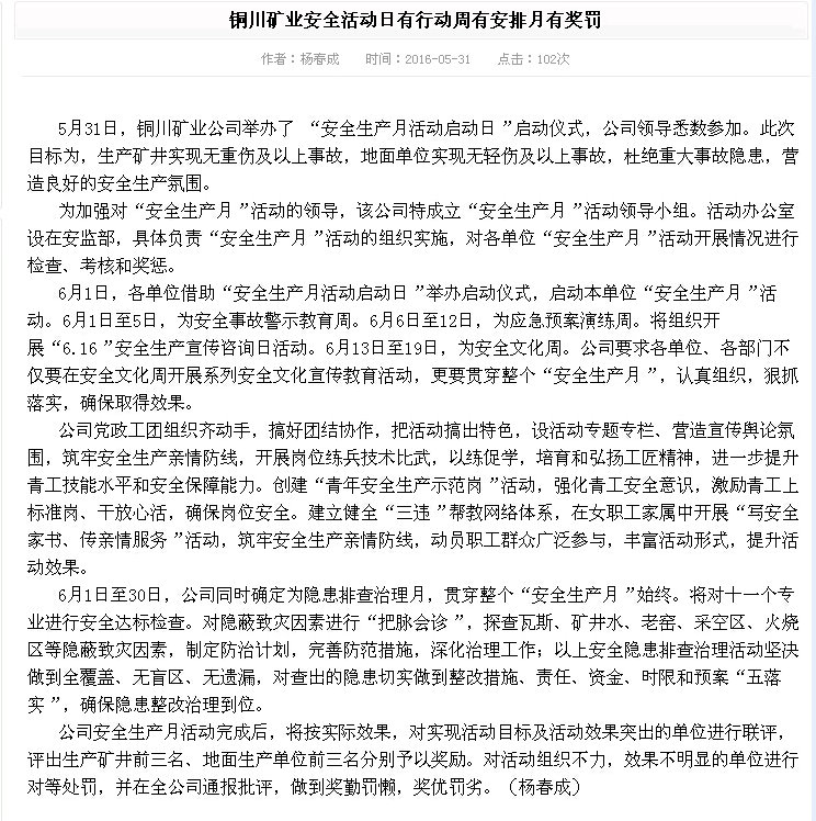 陜煤化集團(tuán)網(wǎng)站 2016年5月31日 安全生產(chǎn)欄目