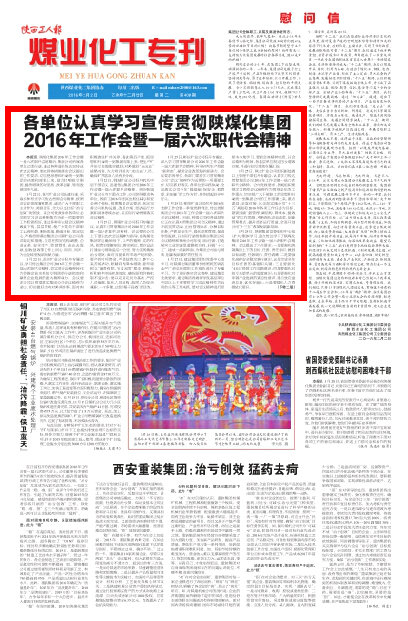 陜煤化集團(tuán)2016年工作會(huì)暨一屆六次職代會(huì)閉幕后,集團(tuán)公司所屬各單位立即行動(dòng),通過各種途徑傳達(dá)宣傳這次會(huì)議精神,制定具體措施落實(shí)會(huì)議提出的工作要求,切實(shí)把思想和行動(dòng)統(tǒng)一到集團(tuán)的決策和部署上來(lái),奮力打響扭虧脫困、提質(zhì)增效的攻堅(jiān)戰(zhàn),改革創(chuàng)新、轉(zhuǎn)型發(fā)展的持久戰(zhàn)。