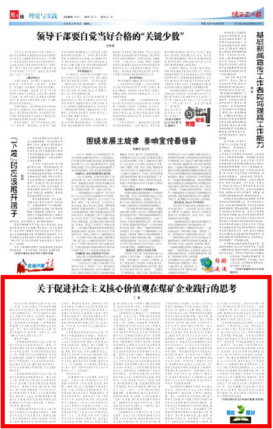 陜西工人報:關(guān)于促進社會主義核心價值觀在煤礦企業(yè)踐行的思考